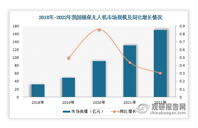 与美国等发达国家相比,我国植保无人机行业起步较晚★■★,2005年才开始进行植保无人机研发工作,2010年行业才迈入商业化阶段■■。但近年来,在农业劳动力减少、无人机技术进步、国家政策支持和市场需求增长等多重因素推动下★◆,我国植保无人机行业发展较快,其市场规模快速扩容■◆■★◆◆,由2018年的32.9亿元增长至170.59亿元,年复合增长率超过35%。