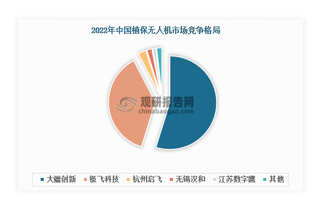 当前,我国植保无人机行业集中度高,2022年CR5达到98.13%■◆,且市场呈现大疆创新◆◆、极飞科技双寡头垄断竞争格局。数据显示,2022年大疆创新◆★■★★◆、极飞科技市场份额分别达到54◆◆■★◆.82%和37.59%,合计占比达到90%以上,遥遥领先其他企业■★,拥有较强的品牌知名度和市场竞争力■◆◆■■。同时,这两家本土企业积极开拓海外市场,也取得不俗的成绩★★◆◆■★。据悉■★★◆◆◆,截至2022年底,大疆创新的植保无人机全球累计保有量已突破 20 万台,产品销至100多个国家和地区★★■■;极飞科技则已实现全球五大洲的业务布局■★◆■,产品与服务遍及全球 57 个国家和地区。此外,市场份额排名前五的企业还有杭州启飞、无锡汉和、江苏数字鹰,均为本土企业,合计占比4■◆★.75%◆■。