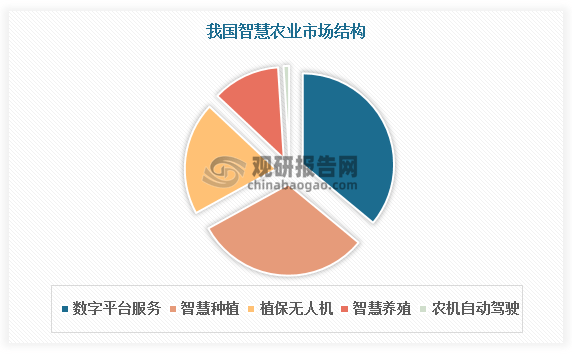 目前★◆◆◆,我国智慧农业市场主要以数字平台服务和智慧种植为主■★■★■,占比36%、31%,此外,植保无人机◆■★◆■、智慧养殖、农机自动驾驶分别占比20%◆★◆■■★、12%、1%。