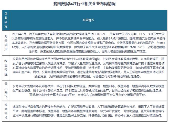 截至目前,海天瑞声、格灵深瞳◆★◆■、云天励飞、博彦科技等A股上市公司正围绕政策要求及市场需求,积极布局数据标注相关产业。如在4D数据标注领域,海天瑞声通过在自动驾驶领域用于标注车辆◆■、行人、交通标志等物体在不同时刻的位置和运动状态,帮助自动驾驶系统理解道路场景的动态变化★★,提升自动驾驶系统的感知能力等。