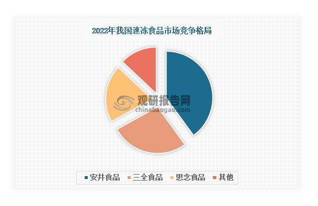 当前,我国速冻食品行业集中度高★■◆■★,2022年CR3就超过了80%,市场竞争格局呈现安井食品、三全食品和思念食品“三足鼎立”的局面■◆★◆。这三家公司凭借着资金实力■★◆◆■◆、研发能力■◆◆★■、生产规模等优势◆■★★◆◆,在速冻食品市场中具有强大的品牌影响力和竞争优势。其中,安井食品是我国速冻食品市场领军企业■★★★■★,2022年市场份额达到40%;其次是三全食品和思念食品■■■◆,分别占比27%和20%。
