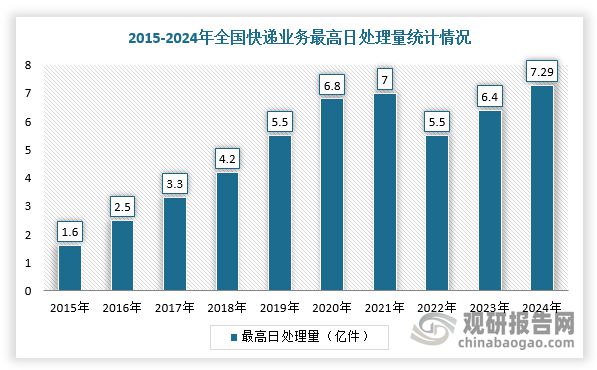 而快递驿站行业盛行■■★,和电商的蓬勃发展密不可分◆◆,尤其是2008年至2017年的10年间规模以上异地件快递量复合增速为39.5%■★★■★,加上“双十一”“618■★★■”等大促活动的上限,整个体量迅速膨胀中■■◆。根据相关资料◆★◆◆■,2024年“双11◆◆★◆”期间(2024年10月21日至2024年11月10日),全国快递揽收量120★◆◆★.8亿件,同比增长21.4%;快递投递量121.2亿件■★■,同比增长25.3%;全国快递业务日均处理量约5.4亿件,最高日处理量达7.29亿件,创历史新高。
