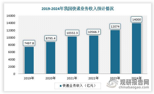 随着电商行业火爆、跨境电商持续火热及政策支持力度加大,我国快递行业业务收入不断增加■★■。根据数据显示,2024年,我国快递业务量达到1745亿件、快递业务收入1.4万亿元,同比分别增长21%■★、13%。