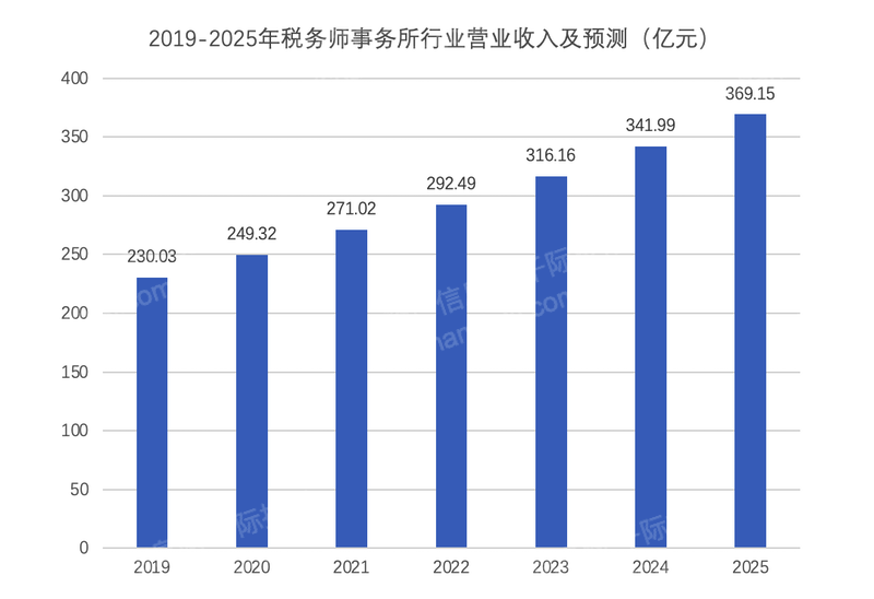 随着社会主义市场经济的建立发展,税制改革的不断深化,税务师事务所行业应运而生★◆★★◆。作为具有涉税鉴证与涉税服务双重职能的社会中介组织——税务师事务所行业也在不断壮大,它促进了纳税人依法诚信纳税的实施和我国税收事业的不断发展。未来,税务师事务所行业将更加聚焦于多元化业务★■★◆■,预计到2025年我国税务师事务所行业营业收入将达到369.15亿元左右。