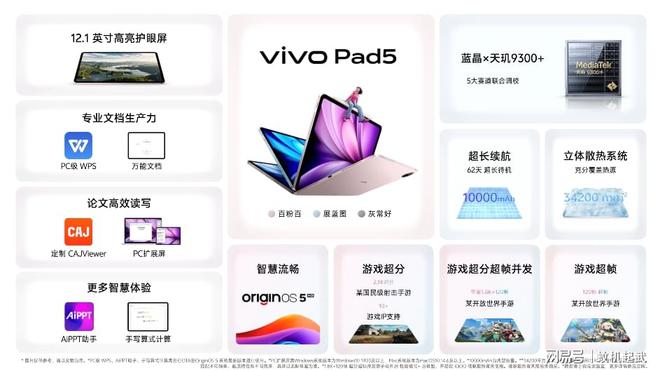 除了vivo S30系列,发布会还有多款全新vivo IoT产品携手亮相■◆★★■。vivo Pad5搭载蓝晶 × 天玑 9300+,一体化轻薄金属机身仅重590g,却拥有10000mAh超长续航和立体散热结构,并以行业领先的超分超帧能力为用户带来优质体验;搭载12.1英寸高亮护眼屏和自研6扬全景声学系统★★◆★■■,构筑至臻视听享受■◆;得益于OriginOS 5 HD带来的专业文档生产力和系统级蓝心大模型AI,配合智能配件三件套,助你学习或办公都事半功倍。vivo Pad5上市价格2499元起■★◆◆★,叠加预售和国补优惠,仅需2039.15元起,现已开启预售,并将于6月6日正式开售。首销期购买,还有更多优惠可享。