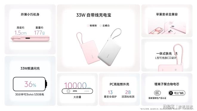 vivo 10000mAh 33W 自带线充电宝同期发布■◆■★◆,上市价格129元,6月6日正式开售,6月18日前搭配S30系列手机组合购买仅需89元■★。vivo IoT产品更有全新推出的教育优惠,买平板送手写笔■◆★,手表、耳机◆■◆◆■★、配件补上加补至高立减20%■■。