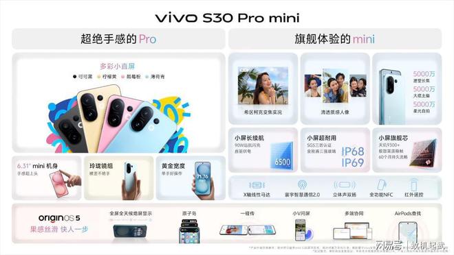 vivo S30系列以独具匠心的色彩美学惊艳登场◆◆★■,带来了酷莓粉、桃桃粉、薄荷青、柠檬黄、可可黑5款多巴胺配色,并巧妙融合甜美柔和的粉色与黄色做底色,与酷劲的黑色中框大胆碰撞,实现“甜酷”的双重性格表达。此外■★■★◆,S30系列还回归了利落直边框纯直屏设计,vivo S30 Pro mini采用与X200 Pro mini相同的6.31英寸小屏◆■◆★,71◆■★◆◆.76mm的机身宽度,整机重量仅为186g。通过精密的内部元器件堆叠技术,实现了1∶1的平衡配重;精致极简的玲珑镜组设计■◆★■★■,投影面积仅占整机9%★■◆★■,掌控更自由◆■★■★★,实现迷你身材的同时兼顾黄金手感。
