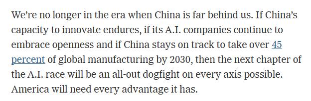 文章称★★◆■◆★,当下已不再是中国远落后于美国的时代了■■★。如果中国的创新能力持续,如果中国的人工智能企业继续选择开放策略,如果中国能持续朝2030年占全球制造业超过45%的目标努力★◆,那么未来人工智能竞赛将会成为各领域的全面竞争。美国将需要利用其所拥有的每一分优势。